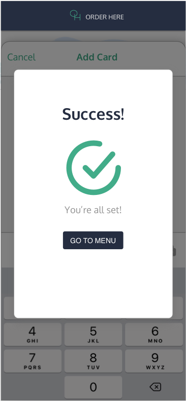 As we did user testing we realized that we could simplify our flow further. This flow allows the user to get threw the flow in as few clicks as possible. We made creating an account optional and moved the payment modal to before the user orders. We can then save their information for the session making it easy for them to keep ordering until they are ready to checkout.